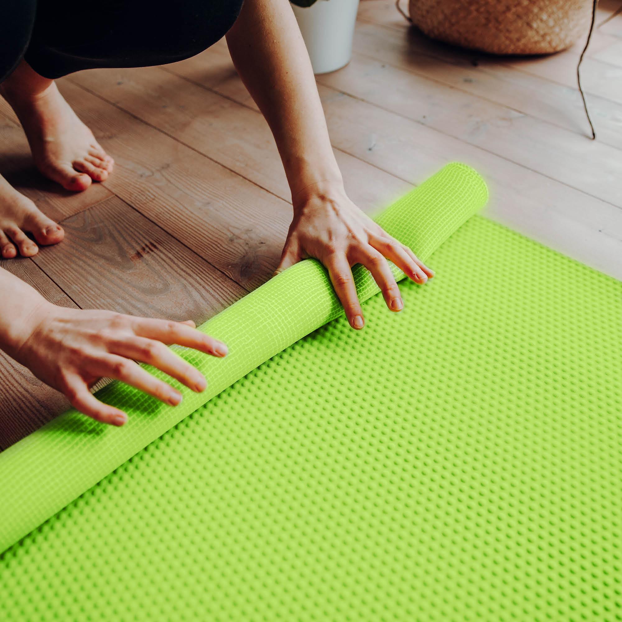 Lämplig för alla typer av yoga, inklusive hot yoga. Rengör med en fuktig luddfri trasa eller yogamattsspray efter användning.